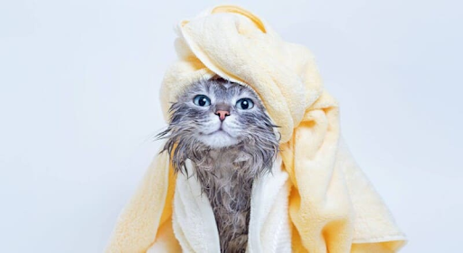 Tắm cho mèo sạch sẽ và lau bằng khăn để thấm bớt nước